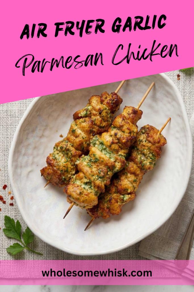 air fryer chicken, garlic parmesan chicken, chicken skewers, air fryer recipes, quick chicken recipe, crispy chicken