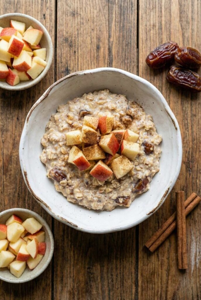 1 photo There is something deeply comforting about quiet mornings when the world hasn’t fully woken up yet. This apple date breakfast oat bowl was born from those slow starts when warmth matters more than speed. The sweetness comes naturally from dates, the cinnamon feels like a soft blanket, and the apples bring a fresh bite that reminds me of autumn mornings in the kitchen. It’s the kind of breakfast that waits patiently for you, already prepared, asking only for a moment of gratitude before the day begins.