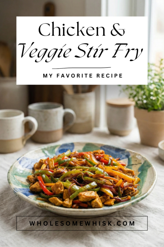 Chicken and veggie stir fry is one of those dishes that adapts to your life. It’s forgiving, flexible, and perfect for using whatever vegetables you already have waiting in the fridge. The turmeric gives it a golden glow, the soy sauce ties everything together, and each bite feels hearty without being heavy.
