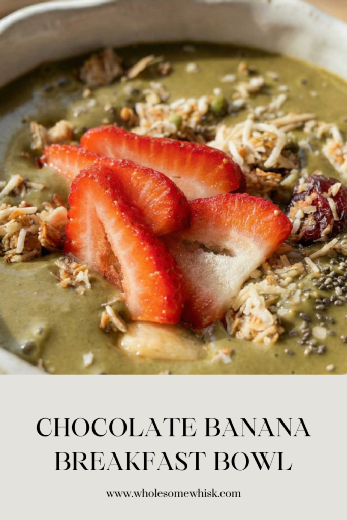 chocolate banana bowl, protein smoothie bowl, healthy breakfast bowl, banana protein breakfast, spinach smoothie bowl, collagen breakfast recipe