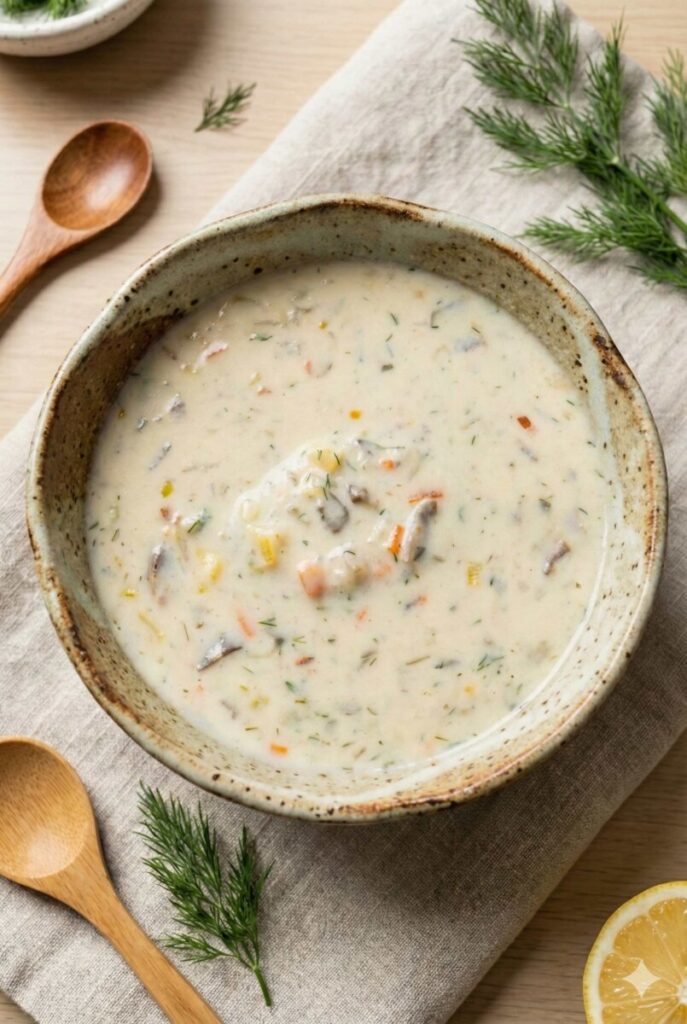This soup is the kind of meal that feels like a pause button. It reminds me of simple family dinners, where vegetables were chopped without hurry and nothing fancy was required. Mushrooms bring an earthy depth, while lemon slices and dill add a subtle freshness that keeps the soup light despite its creamy texture. It is comforting without being heavy, familiar yet still special.