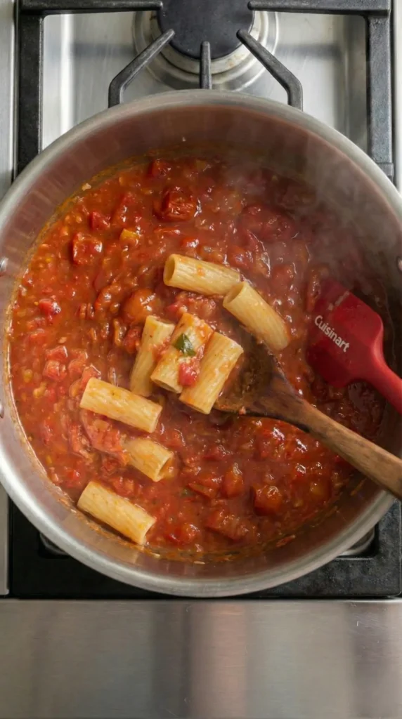 The tomatoes break down into a velvety sauce, the basil adds a bright whisper of freshness, and the cream turns everything luxurious without being heavy. It’s a meal that feels like a warm hug, a gentle pause after a long day, one that brings people together with very little effort. And maybe that’s why it’s become a favorite: it’s simple, honest, and soothing.