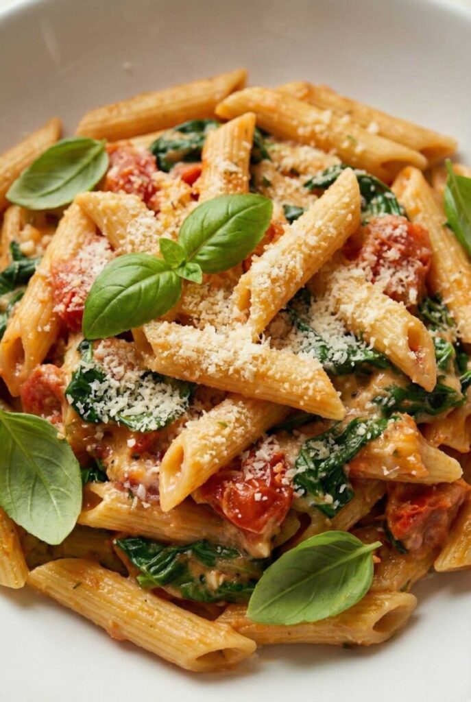 1 photo There’s something deeply comforting about a bowl of creamy pasta simmering on the stove while the kitchen fills with the scent of garlic and herbs. This Creamy Tomato Spinach Penne was born on one of those quiet evenings when everything felt heavy, and all I wanted was a warm meal that felt like care in a bowl. It’s the kind of recipe you make when you don’t want to overthink dinner, when you want something familiar but nourishing, rich yet balanced.