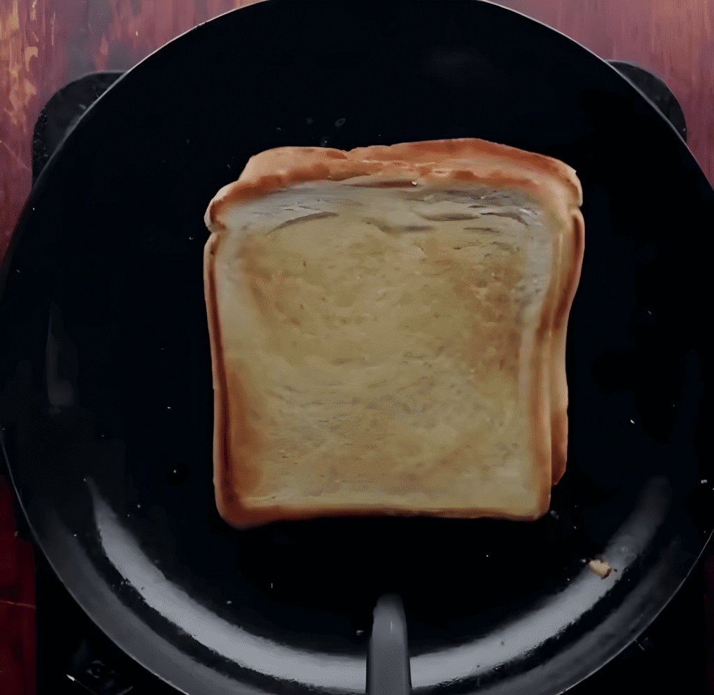 In the same pan, add a little butter and toast 2 bread slices on low heat until golden.