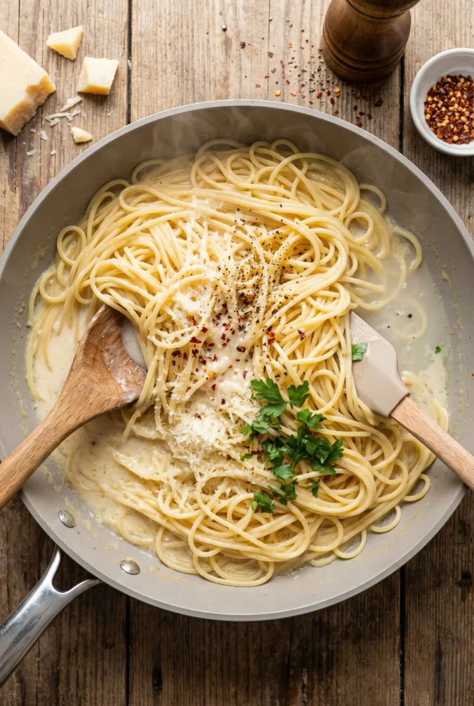 Mistakes to avoid: Don’t overcook shrimp. Don’t skip reserving pasta water. Don’t heat Parmesan directly over high heat.
