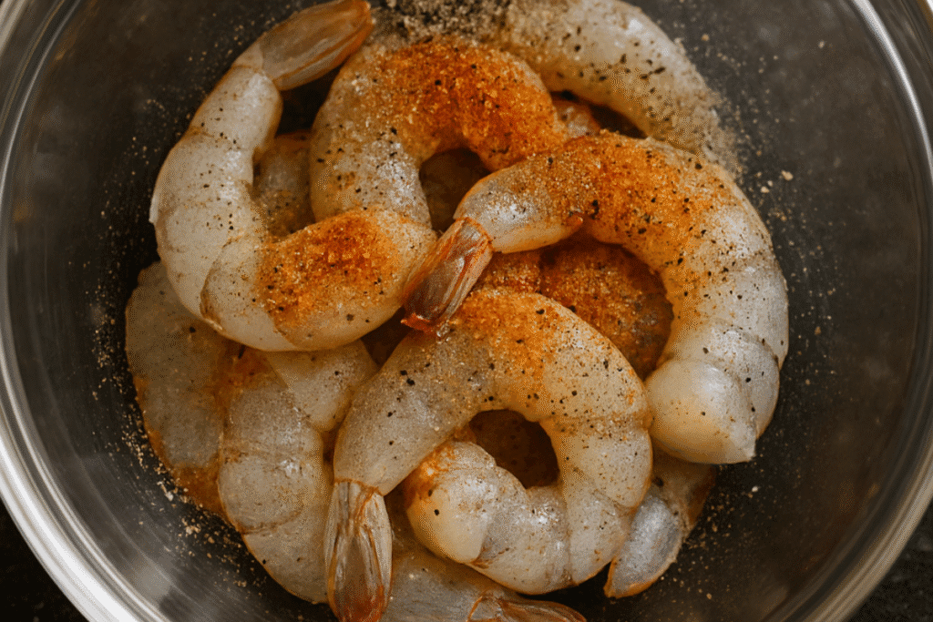 Add the seasoned shrimp and cook for about 1 minute on each side until pink and slightly crisp.