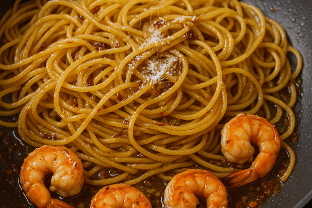 Tender shrimp are tossed in a golden honey-garlic-chili sauce that’s perfectly balanced between sweet and spicy. The sauce clings beautifully to the pasta, making every bite rich, glossy, and satisfying. It’s the kind of quick dinner you can make after work but still feels like a restaurant-quality meal.
