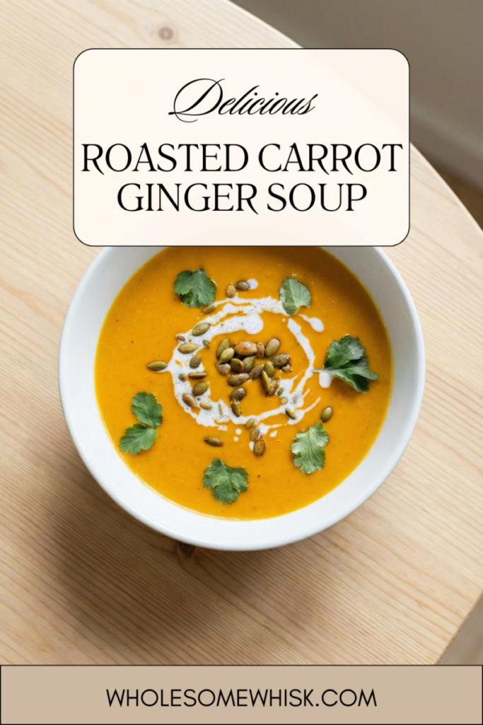 This roasted carrot ginger soup blends caramelized vegetables, fresh ginger, turmeric, and coconut milk into a silky, nourishing bowl perfect for cooler days.